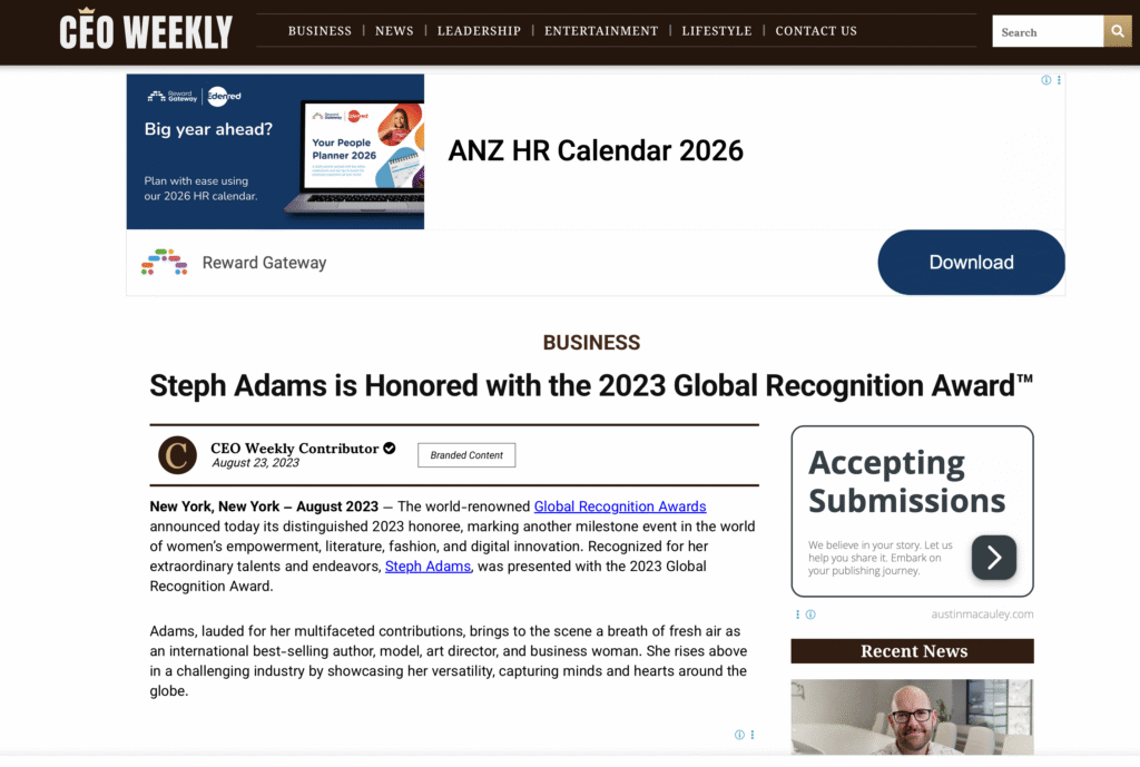 Steph Adams is Honored with the 2023 Global Recognition Award™